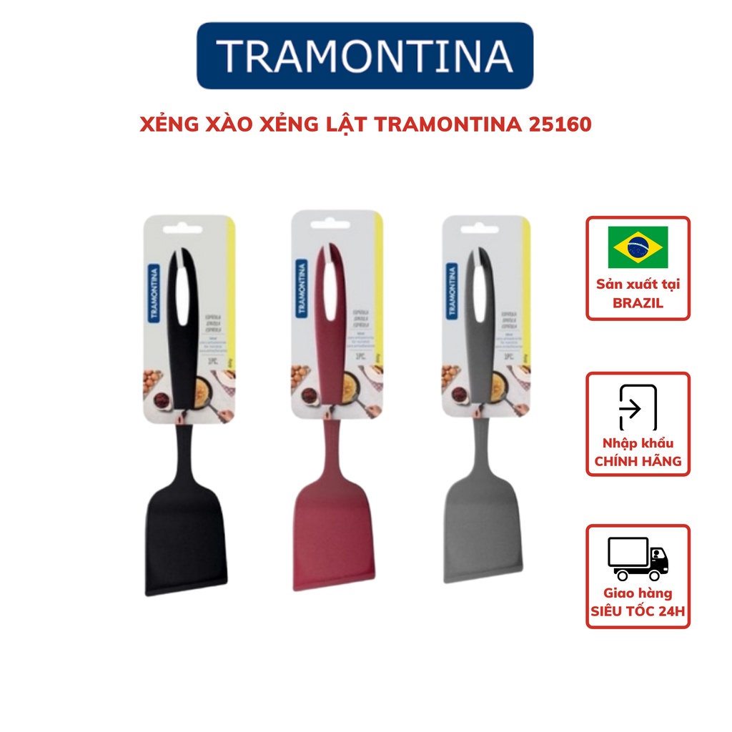 Xẻng nấu ăn Tramontina 25160 không lỗ nhựa PA cao cấp 30 cm chịu nhiệt nhập khẩu chính hãng BrazilTramontina là thương hiệu gia dụng hàng đầu của đất nước Brazil với lịch sử hình thành và phát triển hơn 100 năm. Hiện nay các sản phẩm thuộc thương hiệu Tramontina đã có mặt tại hơn 120 quốc gia với các mặt hàng đa dạng từ đồ gia dụng, tiện ích nhà bếp, đồ nội thất bằng gỗ và nhựa, dụng cụ nông nghiệp và làm vườn, đến dụng cụ bảo trì xây dựng, công nghiệp và ô tô…