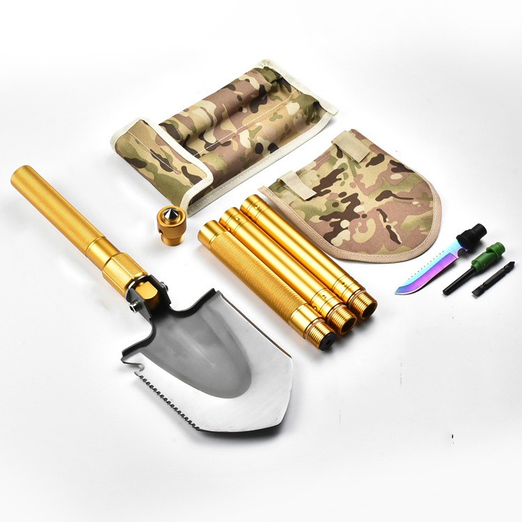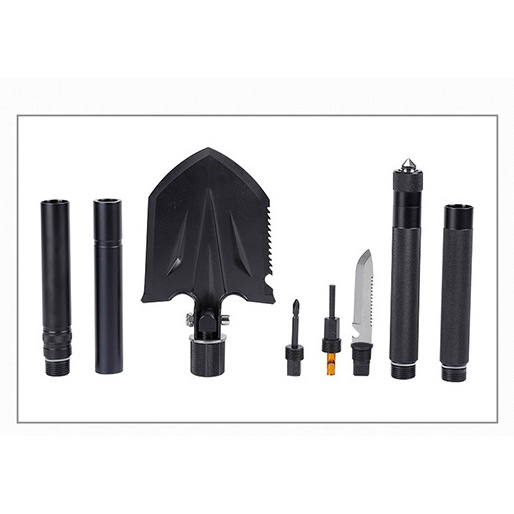 - Xẻng có thể gập 90 độ thành quốc trên lưỡi có một bên là lưỡi dao, một bên là răng cưa tùy chọn để sử dụng