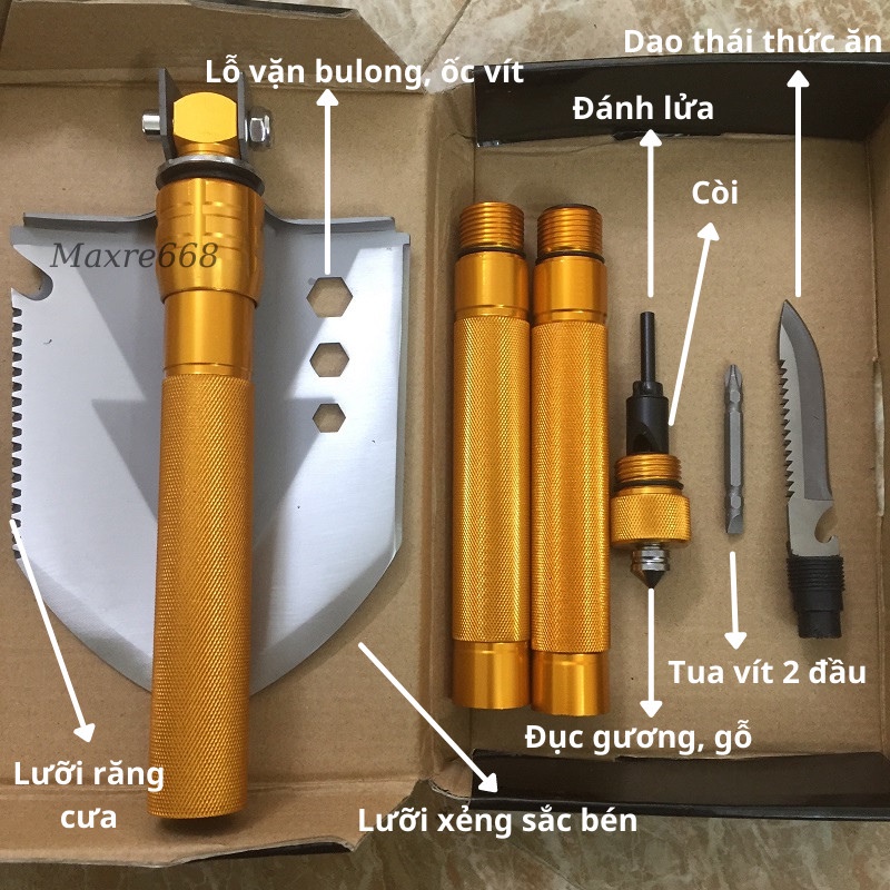 Xẻng quân dụng đa năng đi phượt cao cấp, xẻng đa năng gấp gọn