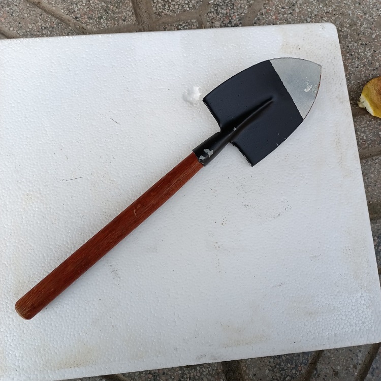 - Xẻng được làm bằng chất liệu hợp kim sắt sơn đen. Cán được làm gỗ tinh tế và chắc chắn.