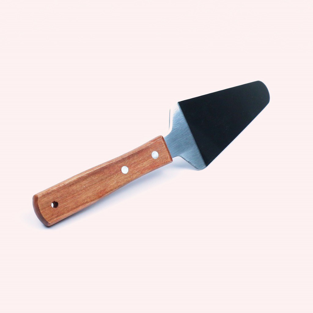 Xẻng xúc bánh tam giác inox, cán gỗ