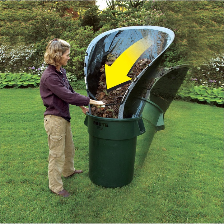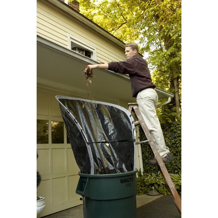 - Nó cũng có thể được sử dụng như một chiếc máng lá có thể được đưa vào thùng rác, túi rác hoặc thùng để xe để thu thập lá từ sân thượng hoặc bố trí trên mặt đất nơi bạn có thể cào lá vào phễu.