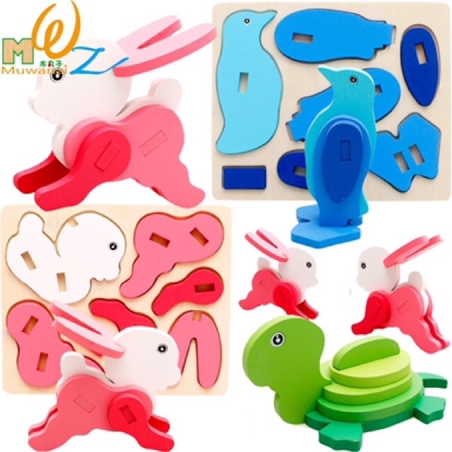 Xếp hình động vật 3D pluzze bằng Gỗ