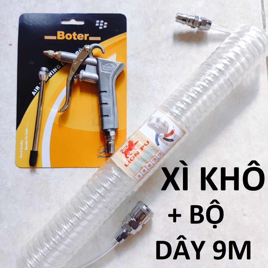 xì khô BOTER 1 đầu đồng + dây hơi 9m, súng xịt hơi thổi bui dùng khí nén