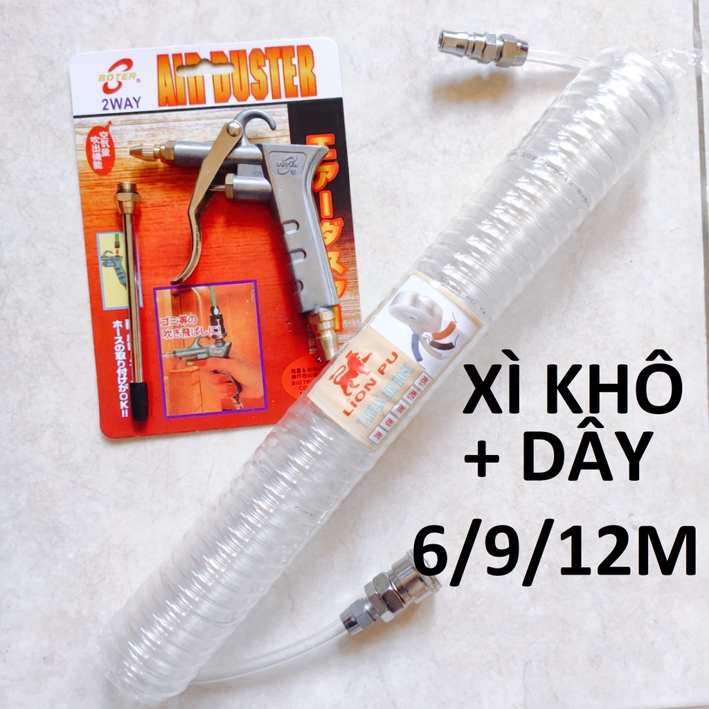 xì khô BOTER 2 đầu đồng + dây hơi 6/9/22m, súng xịt hơi thổi bui dùng khí nén