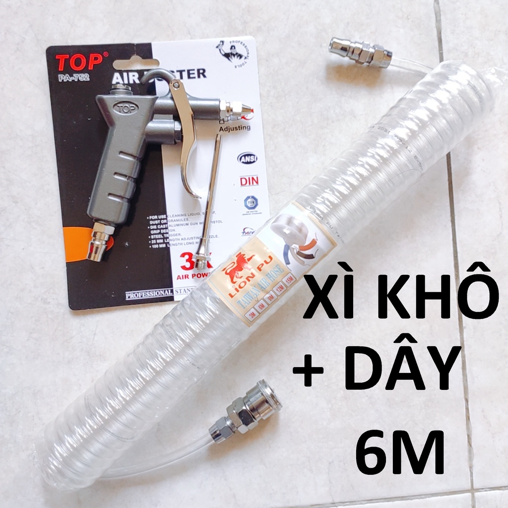 Giới thiệu xì khô TOP cao cấp chính hãng + dây hơi 6m, súng xịt hơi thổi bui dùng khí nén
