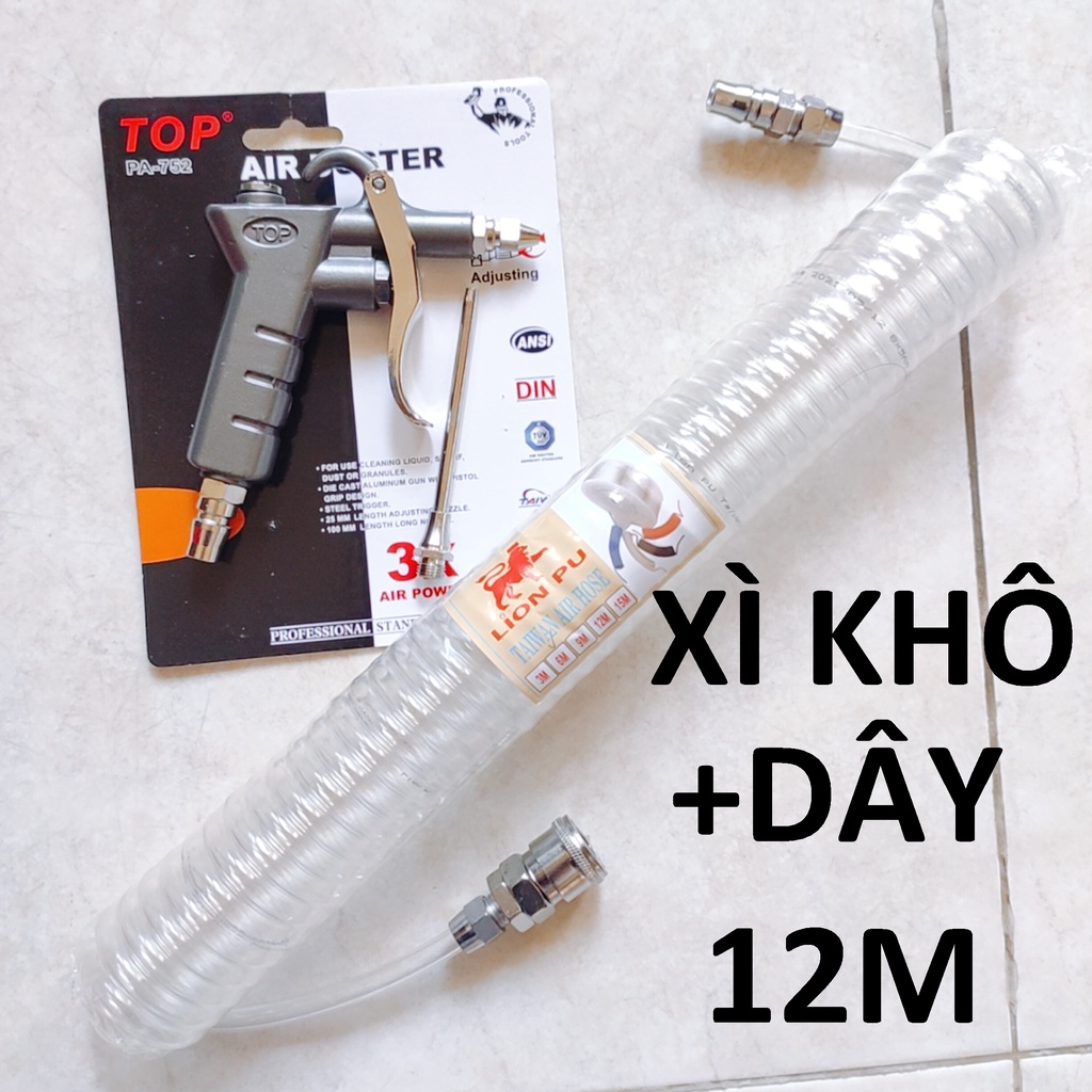 Giới thiệu xì khô TOP cao cấp chính hãng + dây hơi 12m, súng xịt hơi thổi bui dùng khí nén