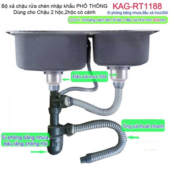 Xi Phông bộ xẢ thoát nước chậu rửa chén 2 hộc