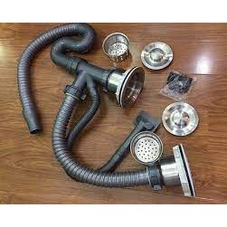 Xi Phông Chậu Rửa Chén Inox 304 2 Hố Và 1 Hố Cao Cấp, Xi Phong chậu Rửa Bát Inox+hiện tại shop có 2 loại xi phông inox 304 vs nhựa