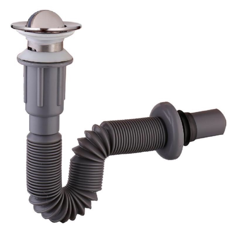 - Đuôi xi phông chất liệu nhựa dẻo, có thể kéo dài và uốn cong theo ý thích