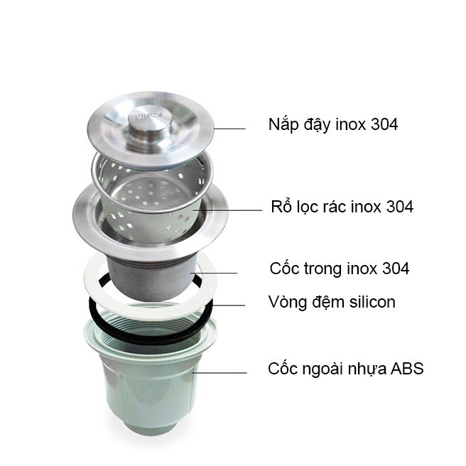 🌟 Bộ sản phẩm bao gồm 2 nắp đậy inox, 2 cốc lọc rác, 2 bộ phễu thoát, 1 phễu thoát tràn, 1 bộ ống xả xi phông nên bạn chỉ cần tháo bộ cũ ra và thay thế vào là được.