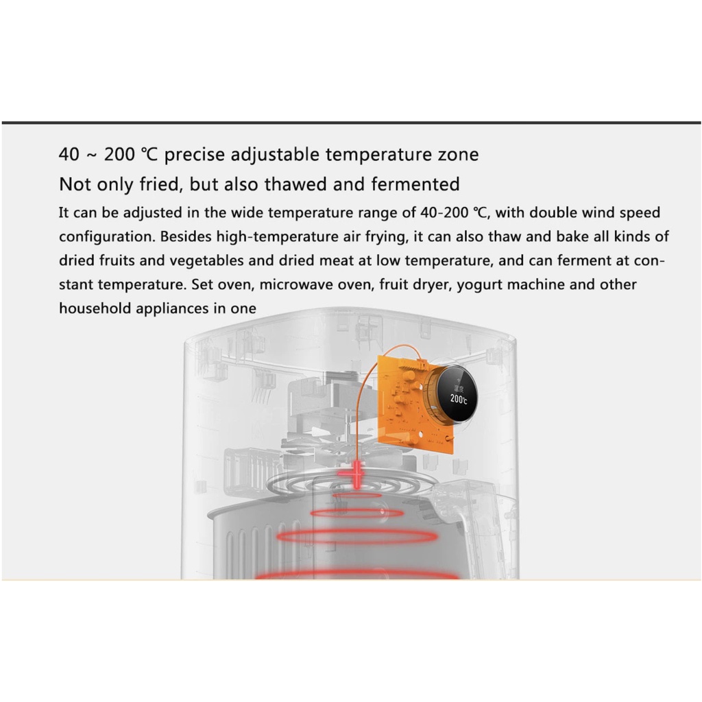 Điều khiển thông minh - Bạn có thể điều khiển nồi chiên không khí, lên lịch nấu ăn và tùy chỉnh công thức nấu ăn của riêng mình trên điện thoại thông minh với MIJIA APP.
