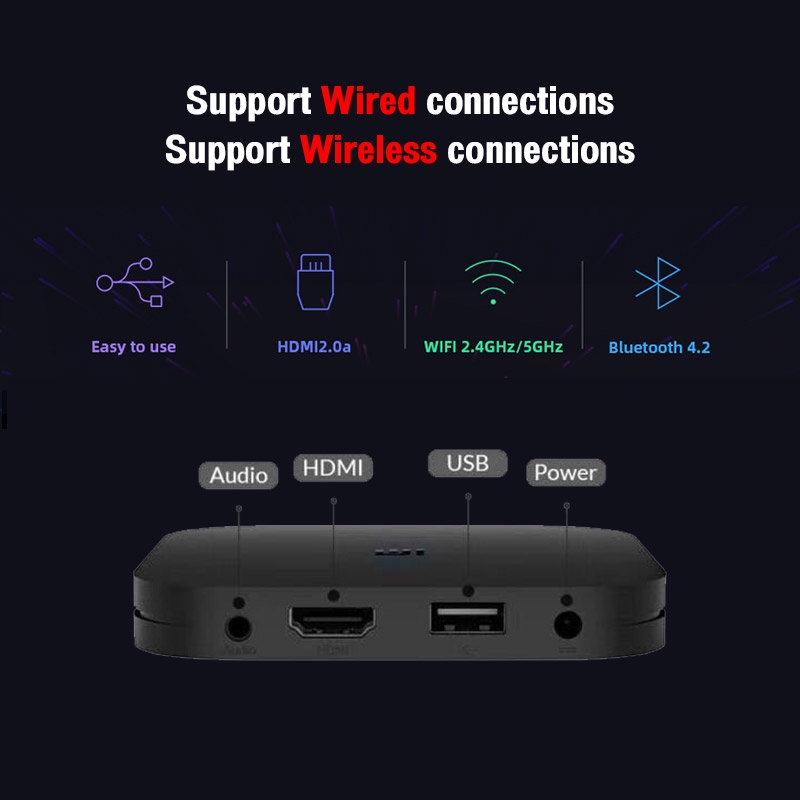 ✔ Có 1 cổng hdmi 2.0a; 1 cổng USB 2.0 cho phép đọc dữ liệu từ bộ nhớ ngoài, 1 cổng AV SPDIF Out / 3.5mm audio output