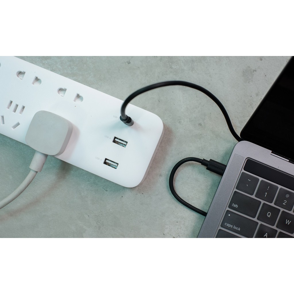 > Ngoài 6 đầu cắm điện thì ổ cắm ZMI CXP01 còn được tích hợp 3 cổng USB có khả năng sạc nhanh cho các thiết bị di động, laptop. Bao gồm 2 cổng USB-A và 1 USB type C, cổng sạc USB-A hỗ trợ sạc nhanh 18W với đầu ra là 5V=3A, 9V=2A, 12V=1.5A và công suất sạc tối đa là 15W khi sạc cùng lúc 2 cổng. Cổng sạc USB type C có công suất lớn lên đến 65W có thể sạc được cho cả Laptop có hỗ trợ sạc qua cổng type C hoặc sạc nhanh chuẩn Power Delivery cho các thiệt bị Iphone hỗ trợ sạc nhanh thông qua cáp sạc C to Lightning.
