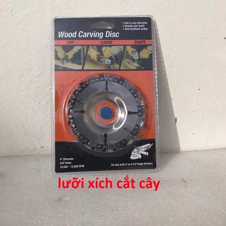 Đĩa lưỡi cưa xích cắt gỗ, phay phá gỗ đa năng gắn máy cắt,máy mài cầm tay 4inch -Lưỡi cưa xích gắn máy màiĐĩa cưa xích 4 inch-4,5 inch chuyên dụng gắn máy mài cầm tay dùng để cắt chế biến gia công hình mẫu trên gỗ, nhựa, tre nứa một cách nhanh chóng, thuận tiện, lưỡi cắt có đường kính 10cm-11.5cm được làm bằng chất thép tôi luyện kỹ càng, an toàn cho người dùng xích cưa phù hợp cho cưa gỗ...