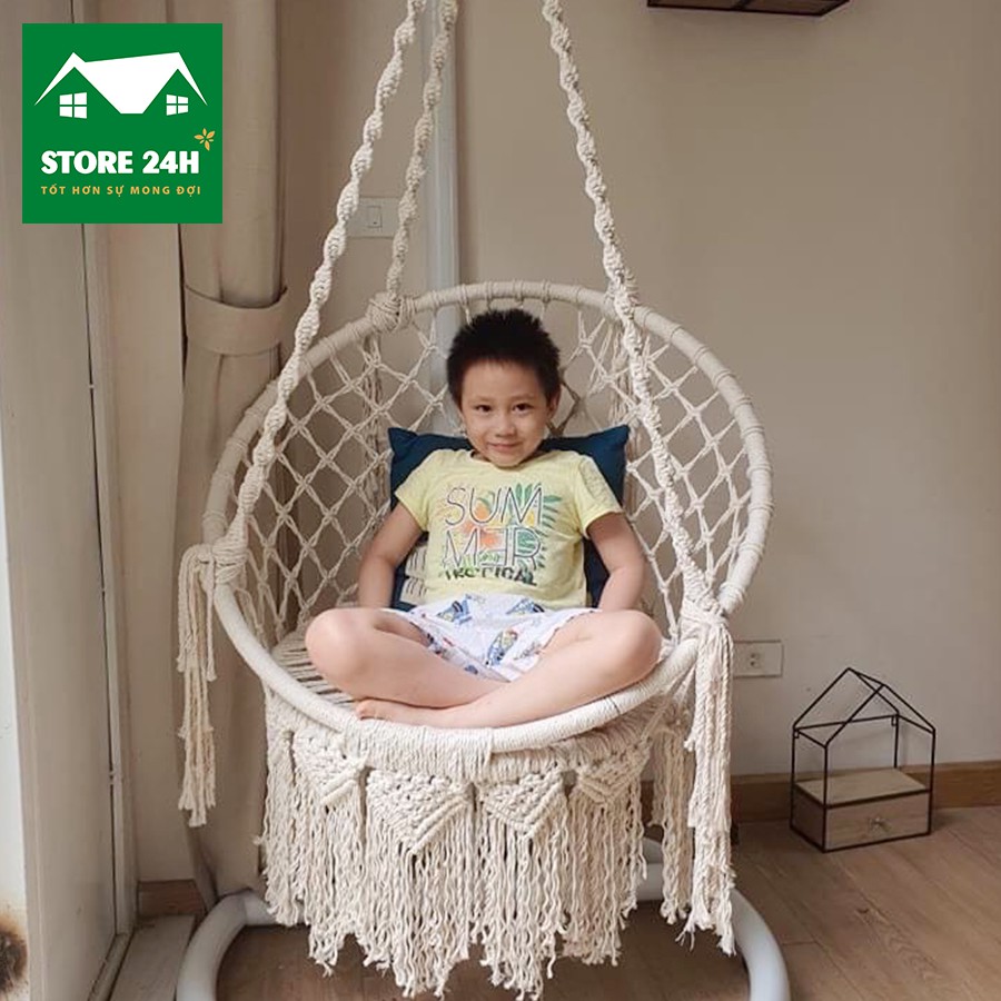 Giới thiệu Xích đu, ghế tựa macrame kiểu vintage chất liệu sợi cotton xoắn, dùng cho phòng khách, phòng ngủ, quán cafe I Store 24h