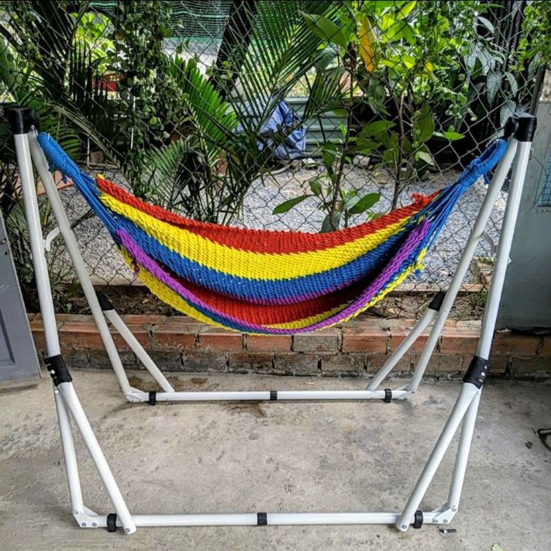 - Lưới võng được dệt bằng sợi cotton đầy sắc màu,được đan thêu kỹ lưỡng, thoải mái khi nằm , thích thú khi làm vật trang trí trong gia đình và sân vườn