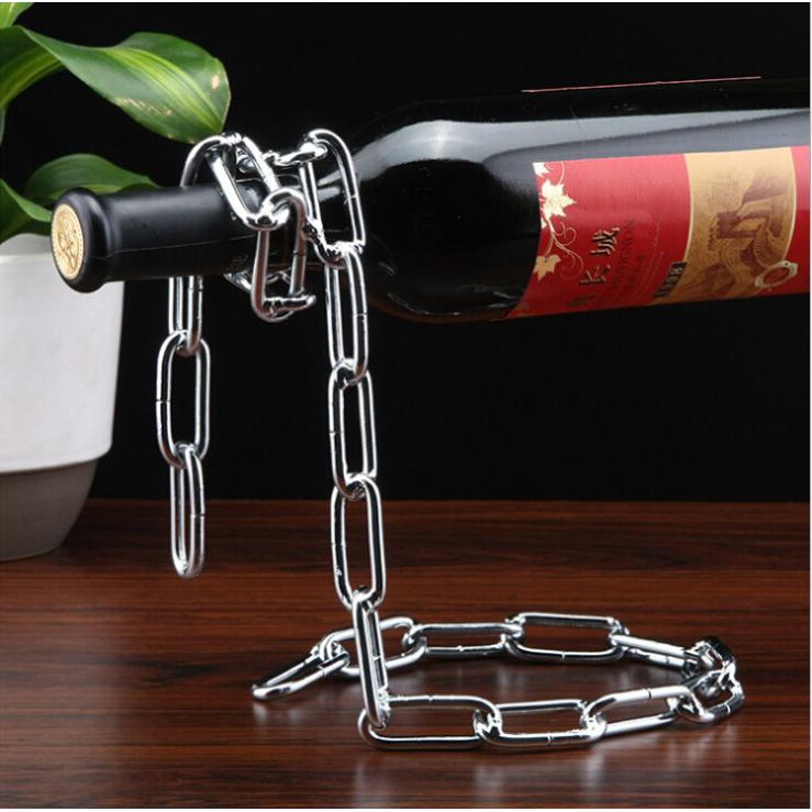Giá đỡ champagne thần kỳ kiểu dây xích & dây thừng lơ lững : Một đoạn mắc xích lỏng lẻo có thể đỡ cả chai champagne. Điều không tưởng???Giá đỡ champagne thần kỳ