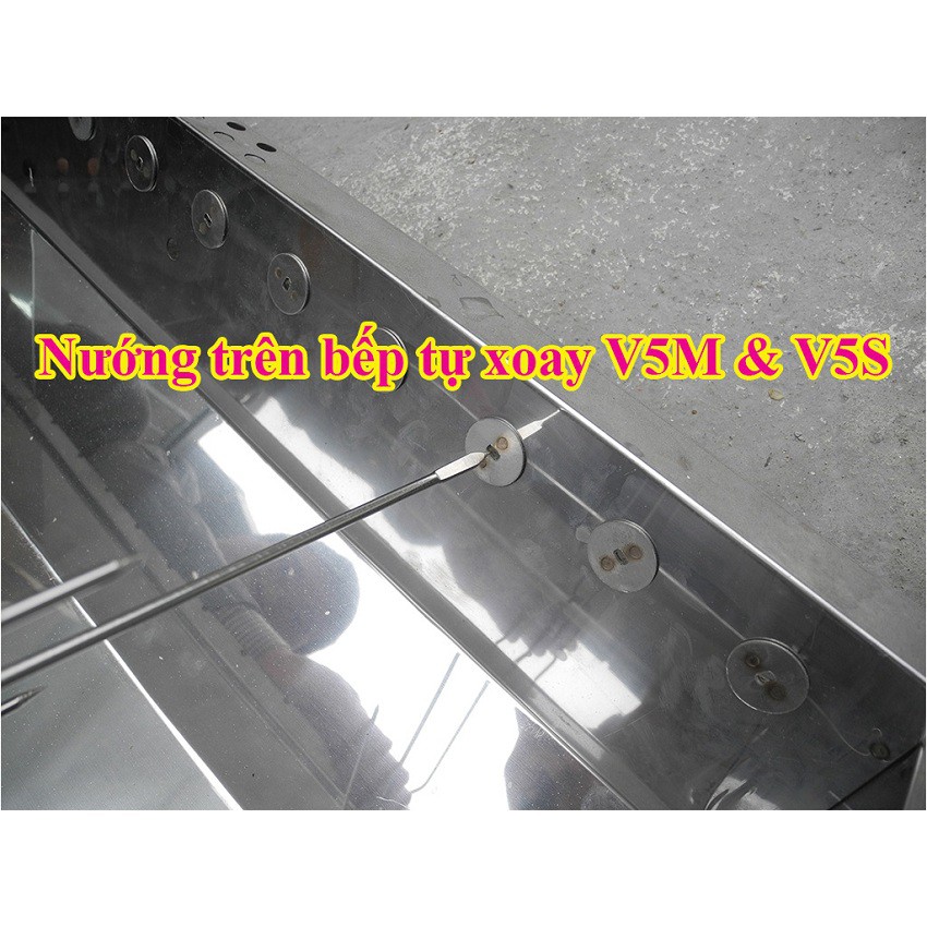 Xiên được làm từ Inox chịu nhiệt cao cấp, dầy dặn, cứng cáp, độ bền trên 3-4 năm được sử dụng thính thức cho bếp nướng TỰ XOAY cao cấp TopV V5M và V5S