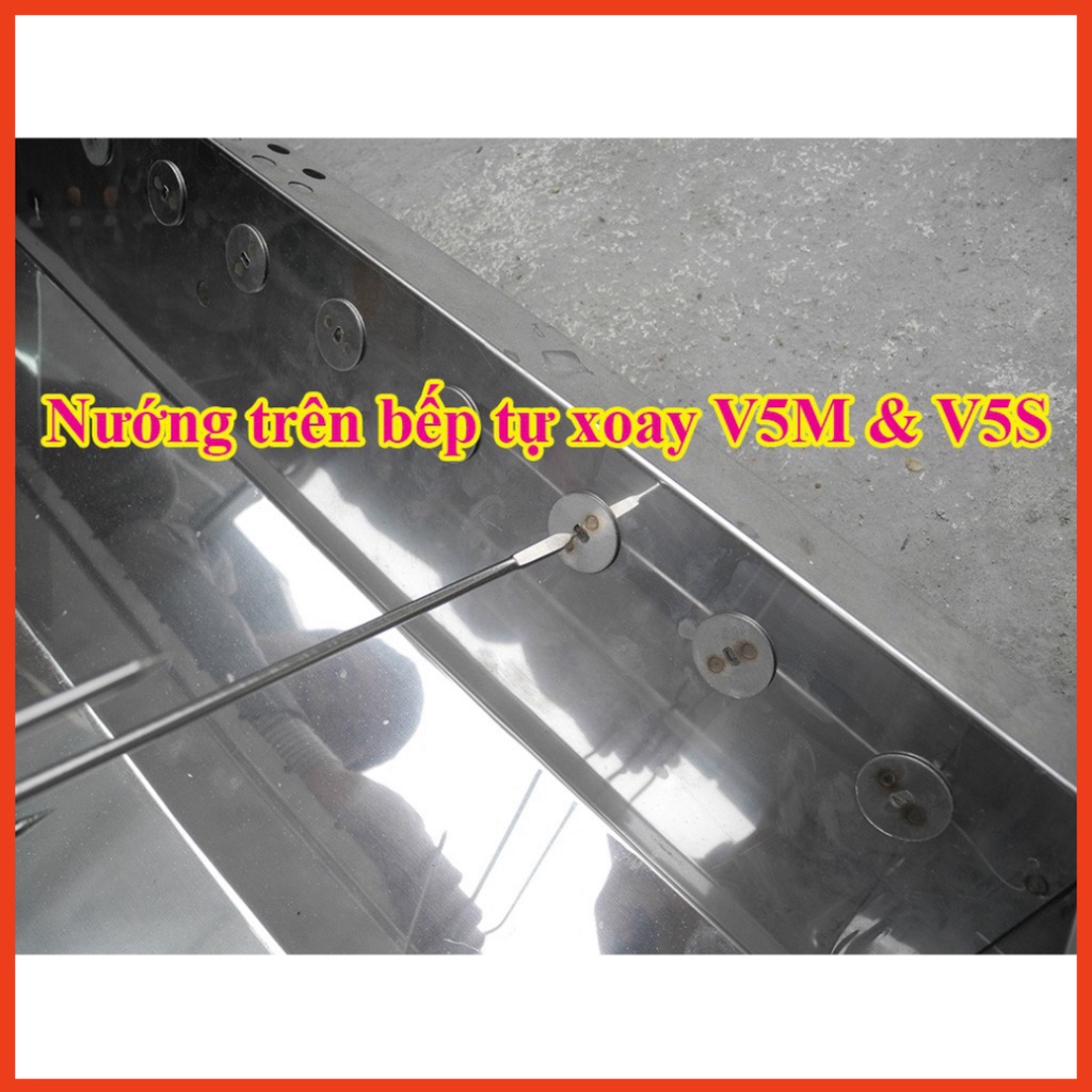 Xiên được làm từ Inox chịu nhiệt cao cấp, dầy dặn, cứng cáp, độ bền trên 3-4 năm được sử dụng thính thức cho bếp nướng TỰ XOAY cao cấp TopV V5M và V5S