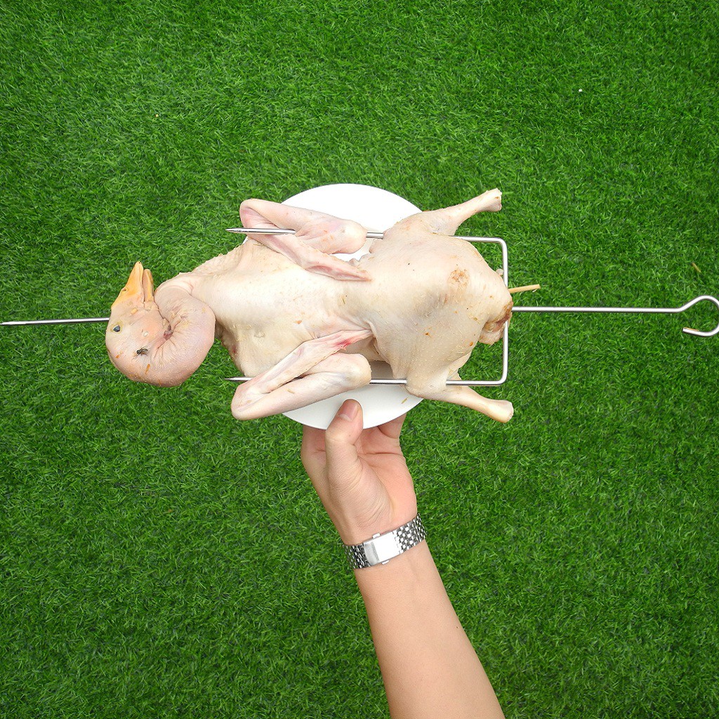 Mỗi lần xiên chúng ta có thể nướng được cả con gà, vịt, cá…từ 2.5-3kg