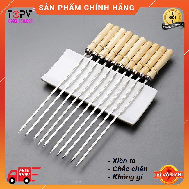Nhà cửa & Đời sống > Dụng cụ nhà bếp > Khác || Xiên inox chuôi gỗ, xiên dùng nướng thịt, inox, Nướng tiện dụng, không gỉ sét, an toàn thực phẩmCòn hàng