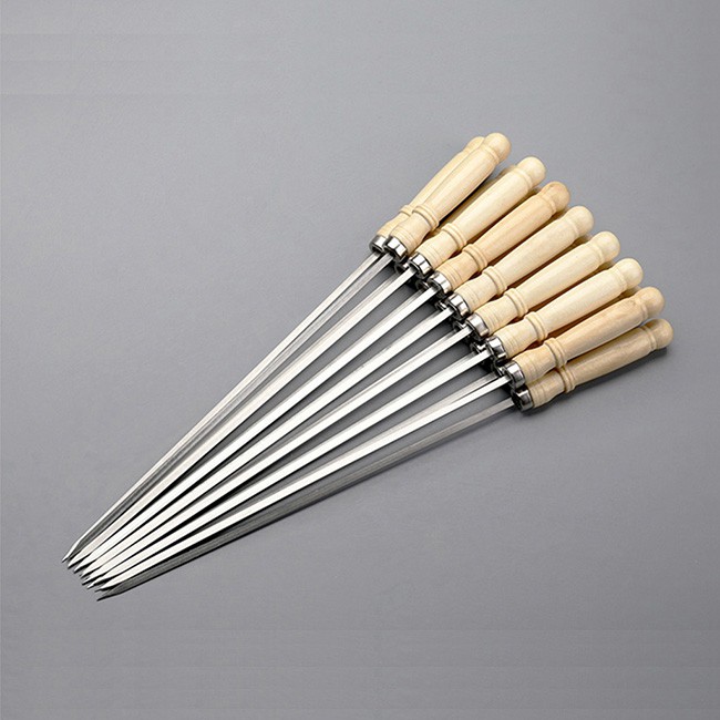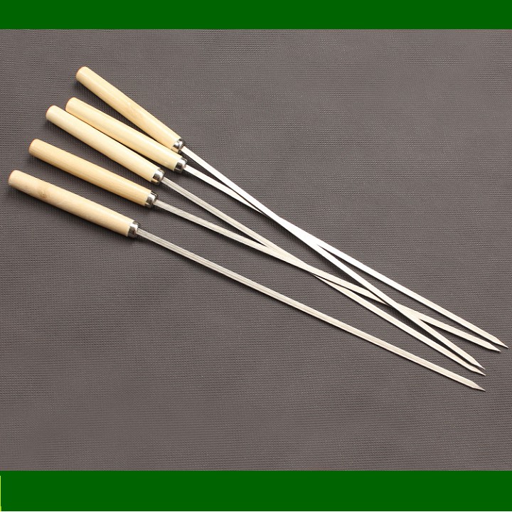 Xiên inox chuôi gỗ, xiên dùng nướng thịt, inox, Nướng tiện dụng, không gỉ sét, an toàn thực phẩm