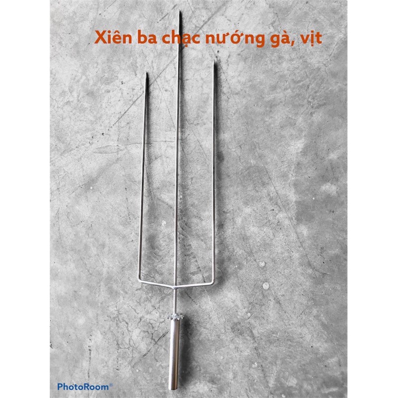 Thân xiên được làm bằng inox không bị han gỉ trong quá trình sử dụngChiều dài thanh giữa từ bánh răng tới đầu là 45 cm.