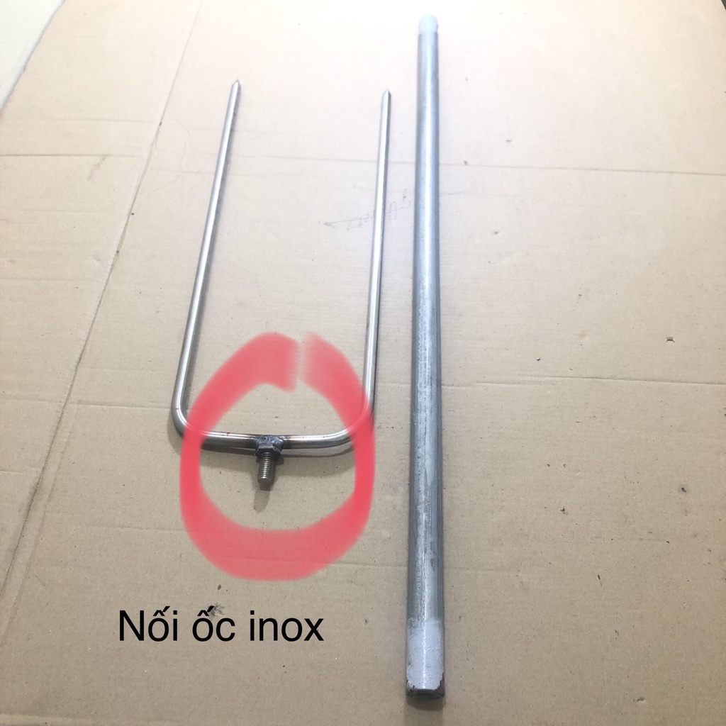 Xiên nướng heo sữa, xiên nướng lắp ráp cán nối dài 1.2mPhần xiên dài 50cm chia 2 cạnh, xiên làm bằng inox đặc phi 10.