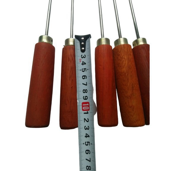 XIÊN NƯỚNG THỊT GIA ĐÌNH - - CHIỀU DÀI 60CM LÀM BẰNG INOX 304Chiều dài 60cm, có một đầu sắc nhọn giúp xiên thức ăn dễ dàng, 1 đầu có tay cầm dễ dàng cho việc xoay, lật xiên đồ ăn