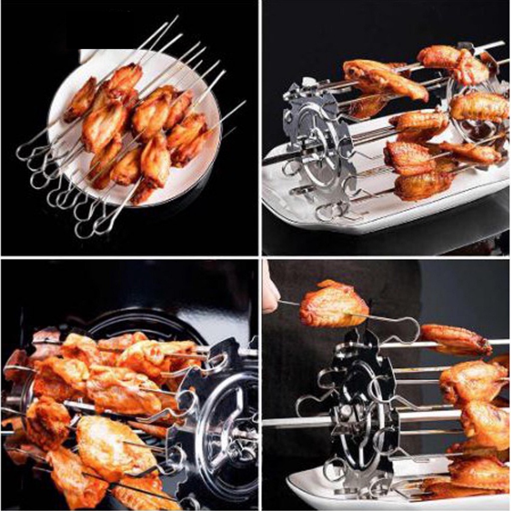 Bộ Xiên Thịt Nướng 10 Que Độc Quyền Dành Riêng Nồi Chiên Không Dầu MOCATO M6071. Gồm 2 tấm cố định và 10 que nướng, kèm theo 2 ốc cố định trục quay sắn cso của lò