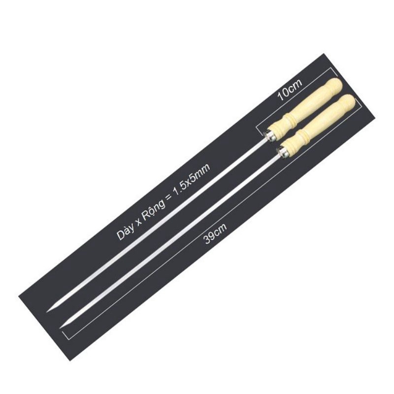 Xiên thịt nướng chuôi gỗ cao cấp dài 39cmQue xiên thịt nướng inox chuôi gỗ là giải pháp cực kì hiệu quả thay thế cho cách nướng vỉ thông thường. Miếng thịt to nhỏ đều sẽ được ghim chắc chắn trên chiếc xiên cho nên không phải lo lắng miếng thịt bị rơi xuống bếp và cháy.