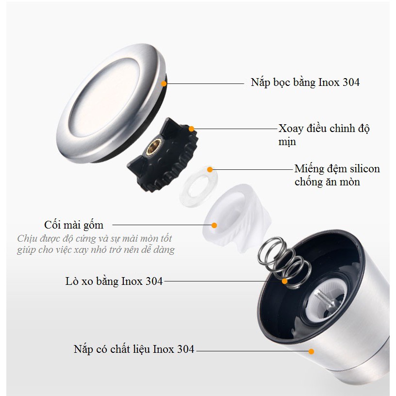 Giới thiệu [Loại Xịn] Lọ xay tiêu cầm tay inox tiện lợi - Dụng cụ xay tiêu cầm tay thủy tinh nắp inox cao cấp đa năng
