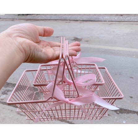 [XỊN_RẺ] Giỏ Sắt Nơ Hồng Pastel Phụ Kiện Chụp Anhr Trang Trí Nhà Và Cửa Hàng Rất Xinh 2 Size