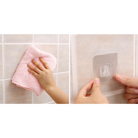 - Tiện ích: . Móc kẹp treo cây lau nhà giúp bạn giữ cây lau nhà luôn khô ráo, không làm hư hại mặt gạch. . Không cần phải khoan tường gắn đinh, dán móc bằng keo 2 mặt, khả năng chịu lực tốt đến 6 kg. . Ngoài ra, bạn có thể dùng treo các vật dụng khác (chổi, cây lau kính,…) . Mặt keo dính tốt trên mặt nhẵn như gạch men, đá cẩm thạch, thủy tinh…