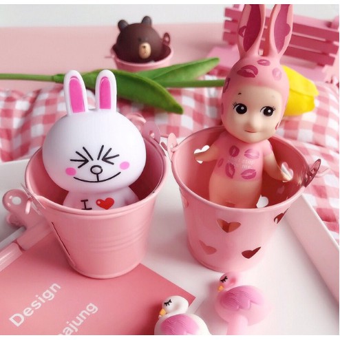 [XINH_RẺ] Xô sắt mini hồng trang trí phòng, bàn học