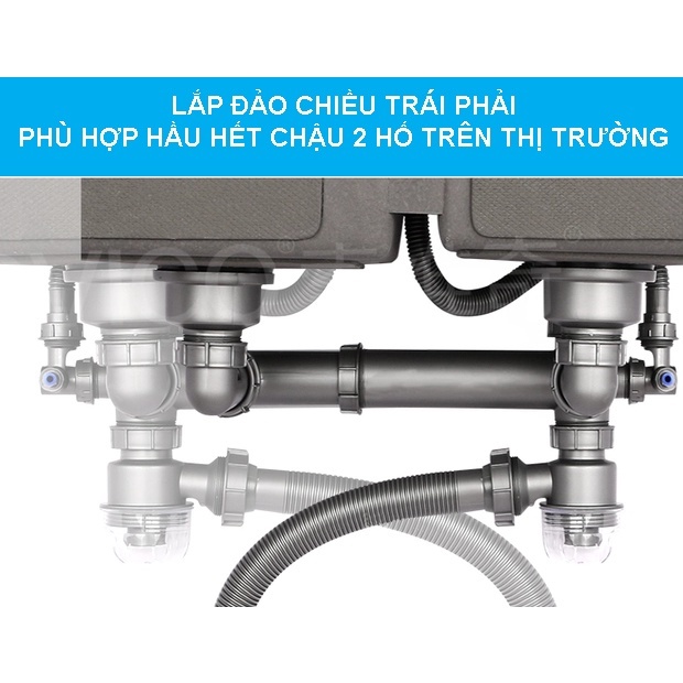 Nhà cửa & Đời sống > Dụng cụ & Thiết bị tiện ích > Chậu rửa & vòi nước || Xiphong chậu rửa chén 2 hộc ống to sát tường tận dụng diện tích lắp đảo 2 chiều trái phảiCòn hàng