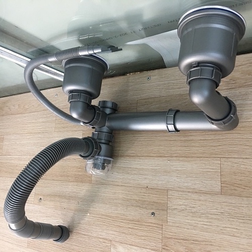 Bộ xiphong dành cho chậu inox 2 hố bầu cốc lọc rác to đại