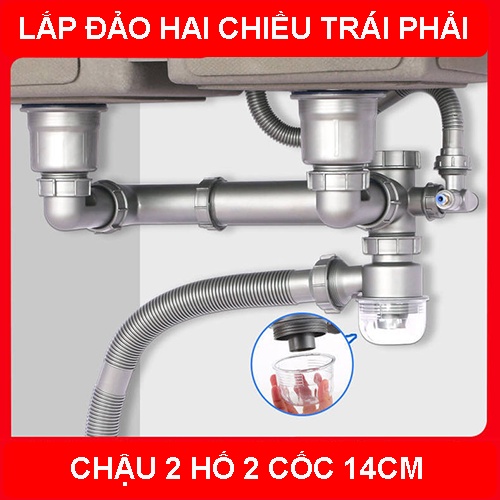 Nhà cửa & Đời sống > Dụng cụ & Thiết bị tiện ích > Chậu rửa & vòi nước || Bộ xiphong chậu rửa chén cao cấp 2 cốc 14cm lắp đảo hai chiều trái phảiCòn hàng