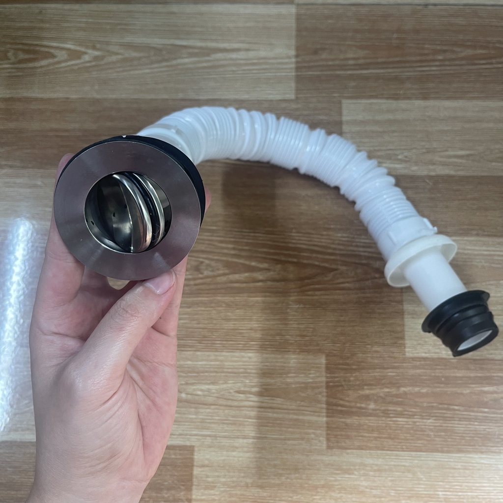 xiphong chậu rửa mặt ống sun S2Chất liệu: Đầu lật inox không rỉ sáng bóng, đuôi sun nhựa Ppr lõi thép, chống mùi tuyệt đối
