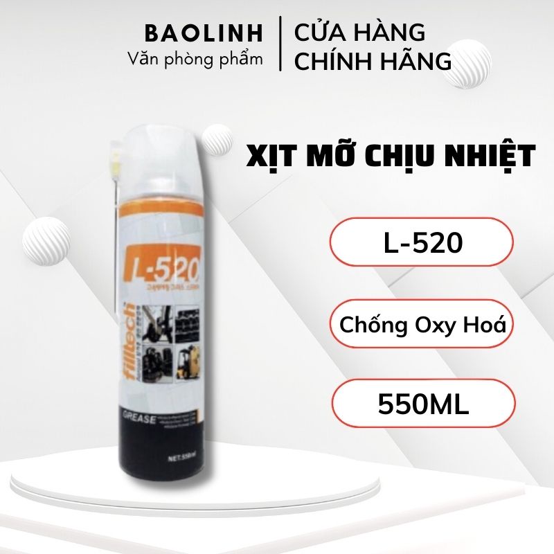 Giới thiệu Xịt Chịu Nhiệt - Mỡ xịt chịu nhiệt Filltech L-520, Mỡ Bôi Trơn Filltech 550ml, Chống Oxi Hóa - Vanphongpham.baolinh