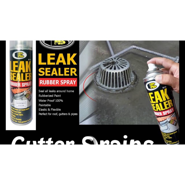 Chai xịt chống thấm chống dột Leak Sealer dạng lớp phủ cao su được dùng để che phủ các chỗ rò rỉ nước và vết nứt trên mái nhà, lỗ đinh, ống nước, máng nước... Bám dính tốt vào nhựa, kim loại, thép, nhôm , gỗ, bê tông, nhựa PVC và các bề mặt khác.Chuyên dùng chống thấm chống dột mái nhà, lỗ đinh, sàn bê tông, tường, ống nước, máng xói nước...bám dính trên bề mặt kim loại, gỗ, nhựa, tường, bê tông, gạch...