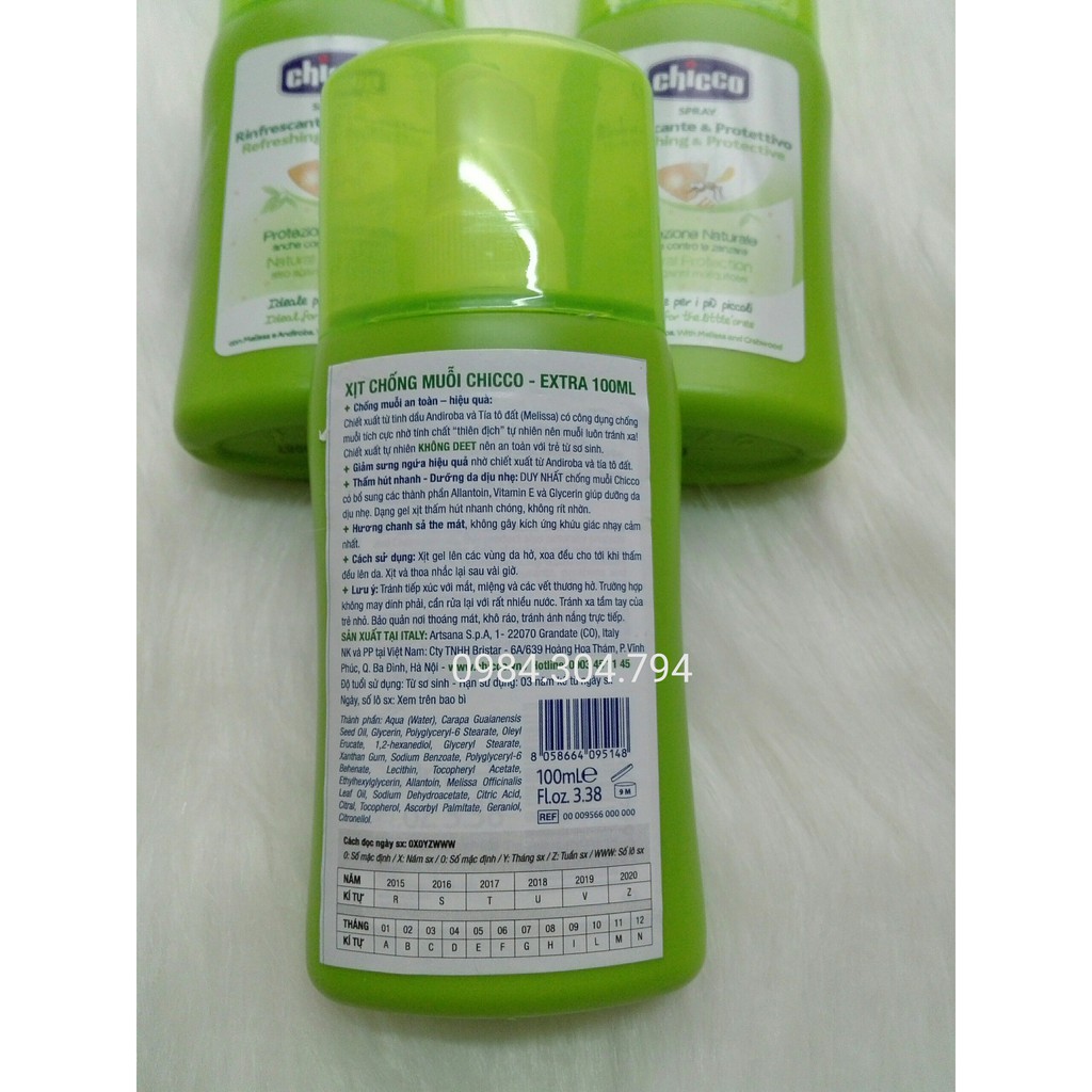 XỊT CHỐNG MUỖI CHICCO - EXTRA 0M+ 100mlĐây là mẫu mới các mom nha với hương chanh sả thơm mát ạ. Mom nào dùng mẫu cũ 60ml rồi sẽ thấy mẫu mới tuyệt vời thế nào nha.