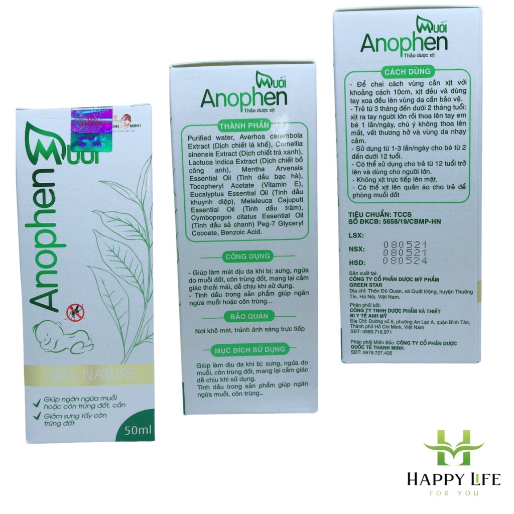 Giới thiệu Xịt chống muỗi cho bé, xịt đuổi muỗi thảo dược Muỗi Anophen 50ml, giảm sưng ngứa - Happy Life 4U