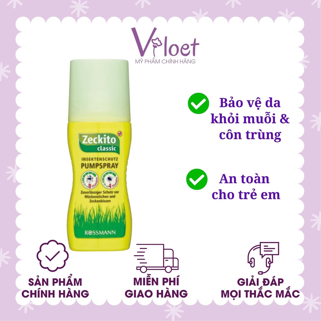 Xịt chống muỗi & côn trùng đốt Zeckito Đức 100ml chai nhỏ gọn tiện lợi - Shop ViloetGiúp chống muỗi khoảng 4 - 6 giờ