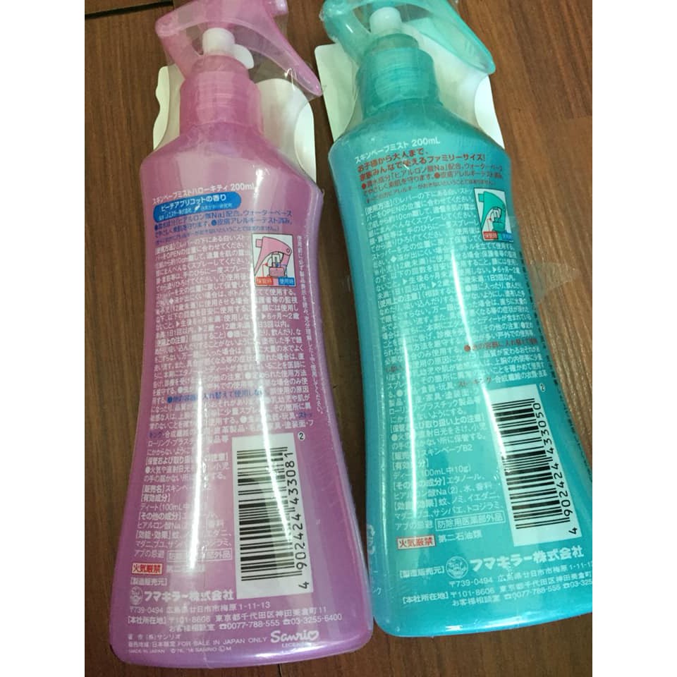 Trong chai xịt có các thành phần giữ ẩm có nguồn gốc từ thực vật, không chứa các chất tẩm màu, gây mùi, hay gây dị ứng cho da. Tăng cường độ a xit nhẹ nhờ pH6 tương đồng với làn da bình thường khoẻ mạnh. Đặc biệt sản phẩm có màu hồng nhạt với hình 2 chú mèo Hello Kitty xinh xắn dễ thương,hương đào.
