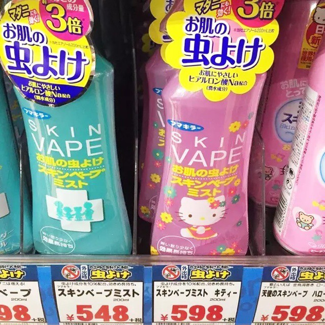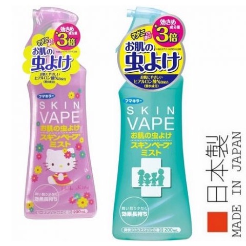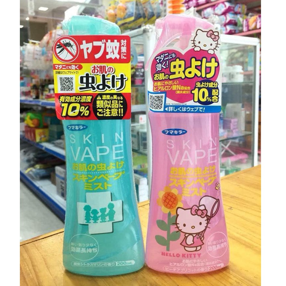 Xịt chống Muỗi Côn trùng Skin Vape Xuất xứ Nhật Bản 200ml (Dạng phun xương bảo vệ an Toàn)Chai xịt chống muỗi và côn trùng SKIN VAPE 200ml màu hồng (hương đào) và màu xanh (hương chanh) dùng để xịt lên da vùng tay, chân, và cổ, hiệu quả trong việc xua đuổi muỗi và nhiều loại côn trùng khác.