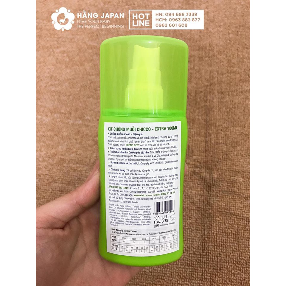 Xịt chống muỗi Extra Chicco Ý100ml cho bé từ sơ sinh trở lên hàng chính hãng