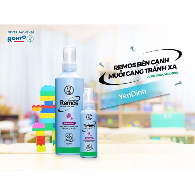 ❎❎❎Xịt muỗi Remos- Xịt chống muỗi Remos 60 ml và 150ml với dạng xịt tiện lợi, có tác dụng hiệu quả trong việc phòng tránh bệnh Zika, sản phẩm có chứa Diethyltoluamide 15% - thành phần hữu hiệu nhất hiện có trong công thức của các chế phẩm xua đuổi muỗi sử dụng trên da, phòng ngừa các bệnh do muỗi gây ra.