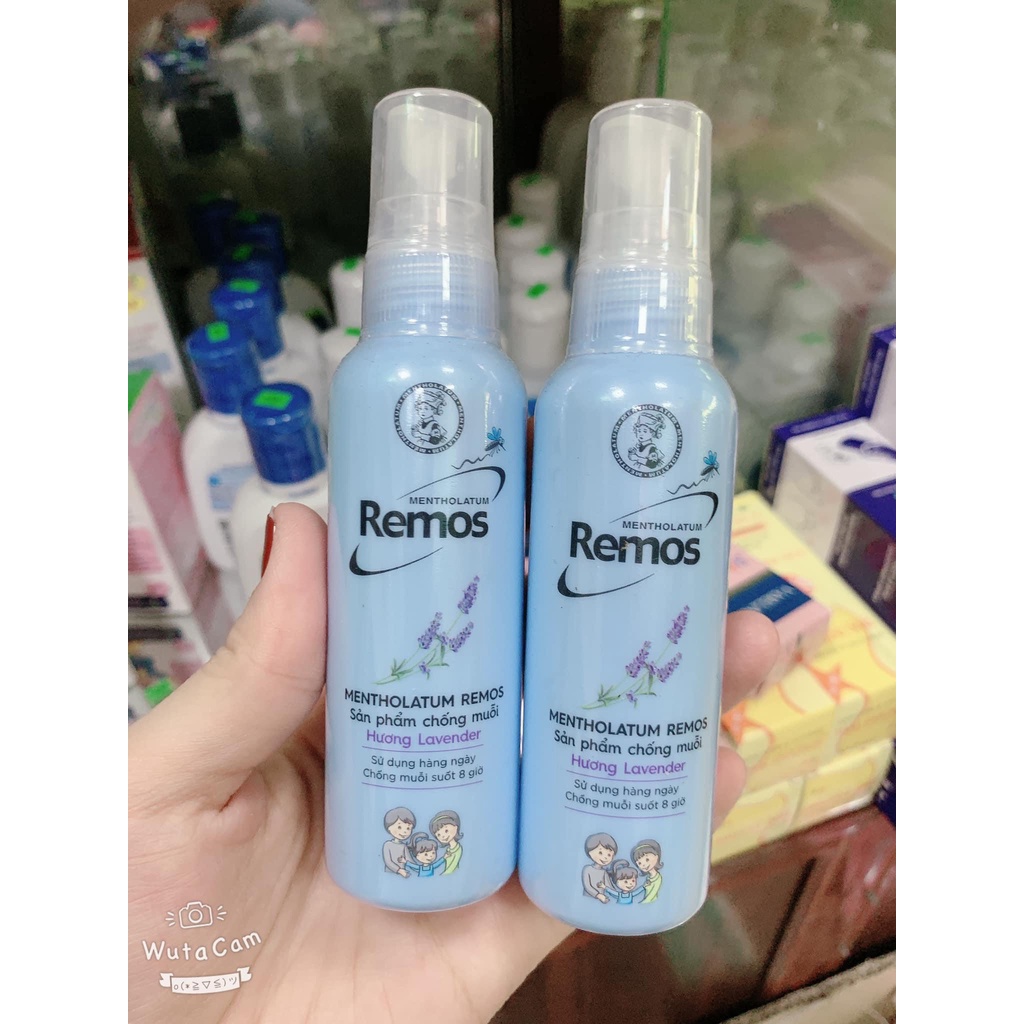 Xịt Chống Muỗi Remos Hương Lavender 60mlXịt Chống Muỗi Remos Hương Lavender là dung dịch chống muỗi dạng xịt ohun sương có tác dụng xua đuổi muỗi, côn trùng và hỗ trợ hạn chế các bệnh do côn trùng gây ra. Sản phẩm có chứa 15% Diethyltoluamide có khả năng xua đuổi muỗi một các an toàn và hiệu quả hơn hết; Tinh chất lô hội cùng Vitamin E giúp giữ ẩm đồng thời nuôi dưỡng làn da trở nên mềm mại, mịn màng hơn. Bên cạnh đó tinh chất lavender không chỉ giúp làm tăng hiệu quả chống muỗi mà còn lưu lại hương thơm dễ chịu trên cơ thể bạn.